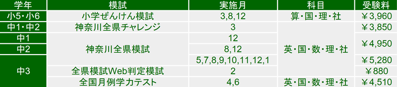 - ◇中3生のみ、毎月模試を受験していただきますので以下の受験料(税込)が必要です。